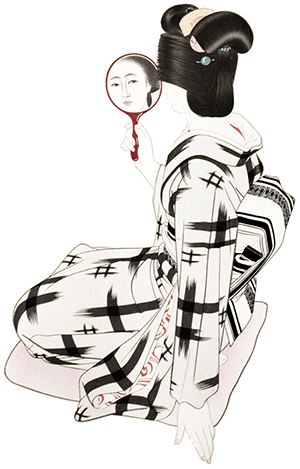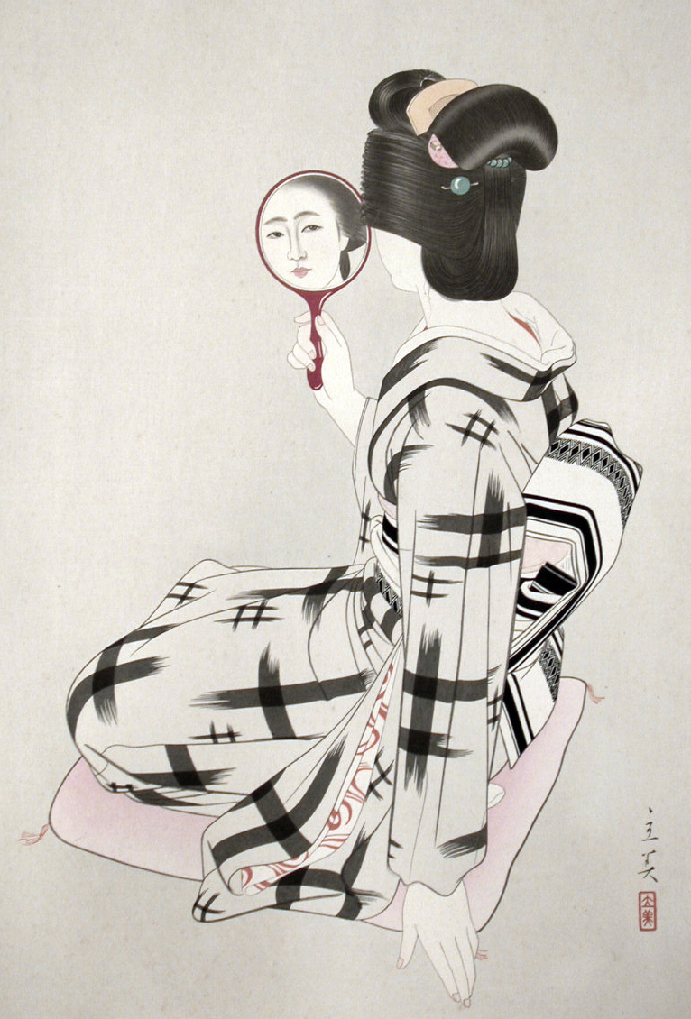 Ukiyo-e is a genre of Japanese woodblock prints (or woodcuts) and paintings produced between the 17th and the 20th centuries, featuring motifs of landscapes, tales from history, the theatre, and pleasure quarters. Usually the word ukiyo is literally translated as ‘floating world’ in English, referring to a conception of an evanescent world, impermanent, fleeting beauty and a realm of entertainments (kabuki, courtesans, geisha) divorced from the responsibilities of the mundane, everyday world.