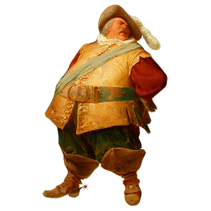 Sir John Falstaff is a fictional character who appears in three plays by William Shakespeare as a companion to Prince Hal, the future King Henry V. A fat, vainglorious, and cowardly knight, Falstaff leads the apparently wayward Prince Hal into trouble, and is ultimately repudiated after Hal becomes king. To describe someone as falstaffian is to say they are characterized by joviality and conviviality.