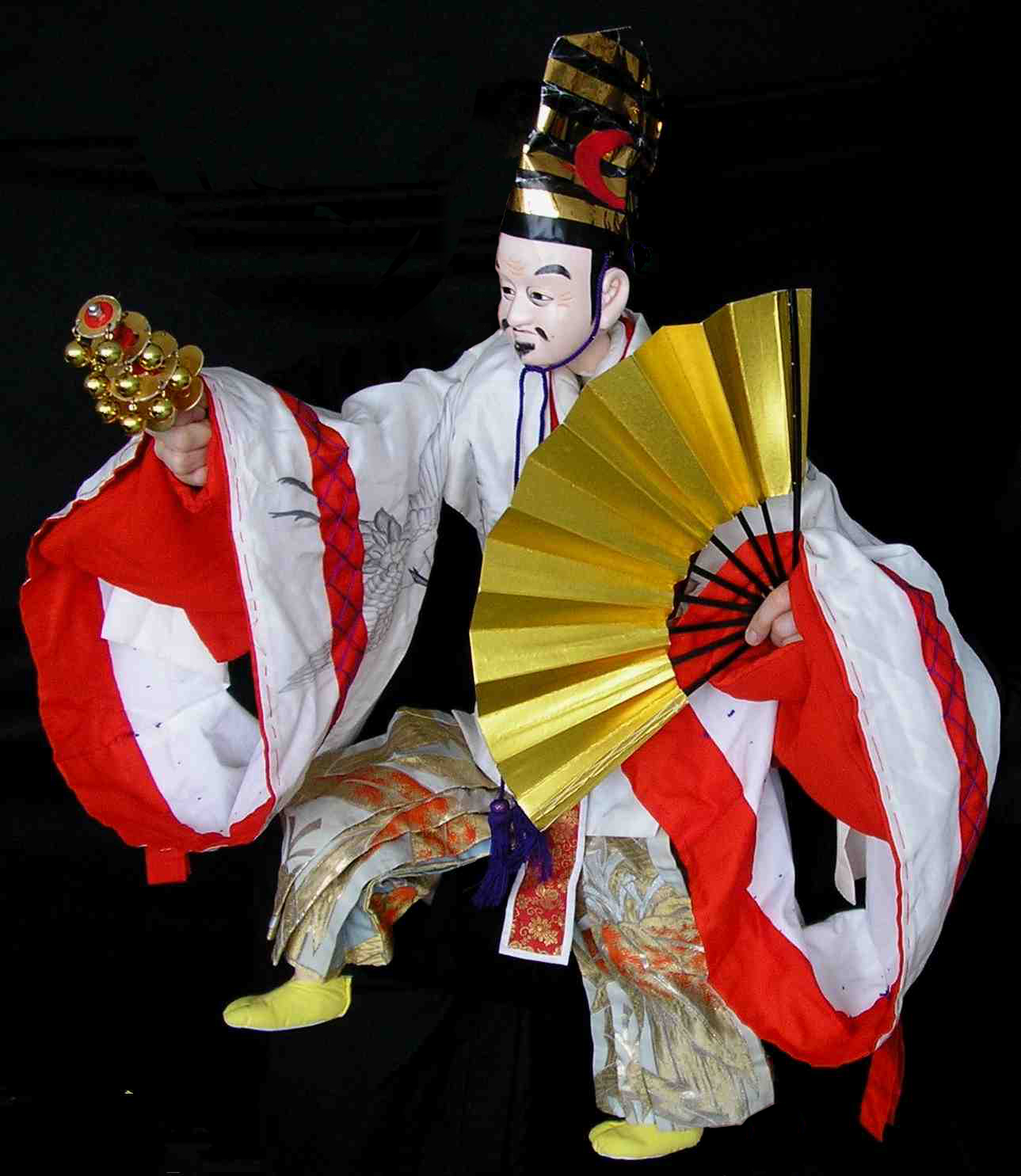 Bunraku [boon-rah-koo] is a form of traditional Japanese puppet theater, founded in Osaka in 1684. Bunraku puppets range in size from two-and-a-half to four feet tall or more, depending on the age and gender of the character and the conventions of the specific puppet troupe. All but the most minor characters require three puppeteers, who perform in full view of the audience, generally wearing black robes.
