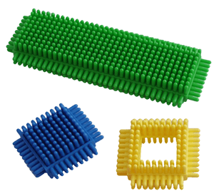 Stickle Bricks are a construction toy primarily intended for toddlers invented by Denys Fisher. The brand is owned by Hasbro and they are currently manufactured by Flair Leisure Products plc. An individual stickle brick is a colourful plastic shape a few centimeters long which has a brush of small plastic fingers on one or more edges. The fingers of adjacent stickle bricks can interlock, allowing them to be joined in various ways. Several companies manufacture similar toys, not all of them compatible. Names for these toys include Nopper, Bristle Blocks, Fun Bricks, Clipo, Krinkles and Thistle Blocks.