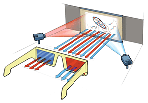 Anaglyph [an-uh-glif] images are used to provide a stereoscopic 3D effect, when viewed with 2 color glasses (usually red and cyan). Video games, theatrical films, and other media can be shown in the anaglyph 3D process. Practical images, for science or design, where depth perception is useful, include the presentation of full scale and microscopic stereographic images.