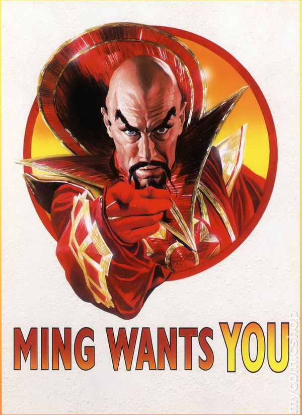 Ming the Merciless is a fictional character who first appeared in the Flash Gordon comic strip in 1934. He has since been the main villain of the strip and its related movie serials, TV shows and film adaptation. The capital of his empire is named ‘Mingo City’ in his honour. In addition to his army, Ming has access to a wide variety of science fiction gadgets, ranging from rocket ships to death rays to robots.