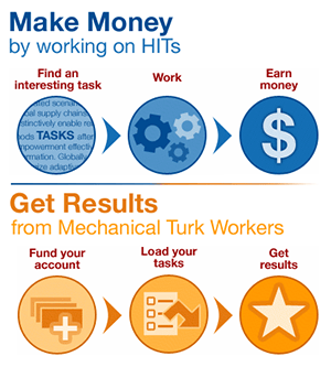 The Amazon Mechanical Turk (MTurk) is a crowdsourcing Internet marketplace that enables computer programmers (known as Requesters) who are located in the United States to co-ordinate the use of human intelligence to perform tasks which computers are unable to do. The Requesters are able to pose tasks known as HITs (Human Intelligence Tasks), such as choosing the best among several photographs of a store-front, writing product descriptions, or identifying performers on music CDs. Workers (called Providers) can then browse among existing tasks and complete them for a monetary payment set by the Requester.