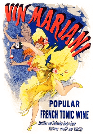 Vin Mariani (French: Mariani’s wine) was a tonic and patent medicine created circa 1863 by Angelo Mariani, a chemist who became intrigued with coca and its economic potential after reading Paolo Mantegazza’s paper on coca’s effects. Mariani started marketing a wine called Vin Tonique Mariani (à la Coca du Pérou) which was made from Bordeaux wine treated with coca leaves.