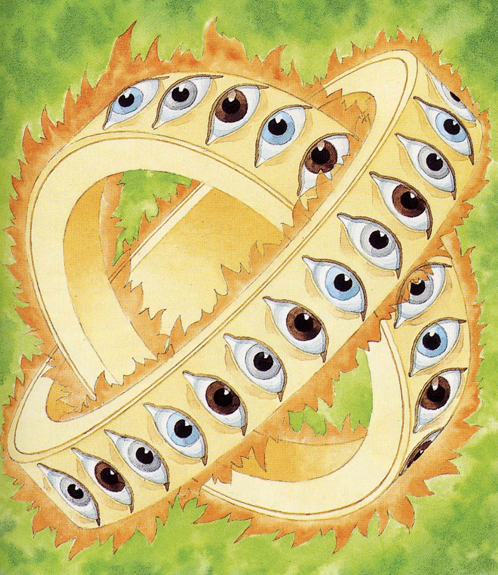 The Thrones are a class of celestial beings mentioned by Paul of Tarsus in Colossians 1:16 (New Testament) and related to the throne of God. They are living symbols of God’s justice and authority. The corresponding order of angels in Judaism is called the Erelim, which translates to ‘valiant ones,’ ‘heroes,’ or ‘warriors’. The Ophanim (Wheels or Galgallin) is a class of higher liberated celestial beings, under many Christian angelic hierarchies, that are also known as the ‘Thrones,’ from Daniel 7:9 (Old Testament). They are the carriers of the throne of God, hence the name. They are said to be wheels within wheels covered in eyes.