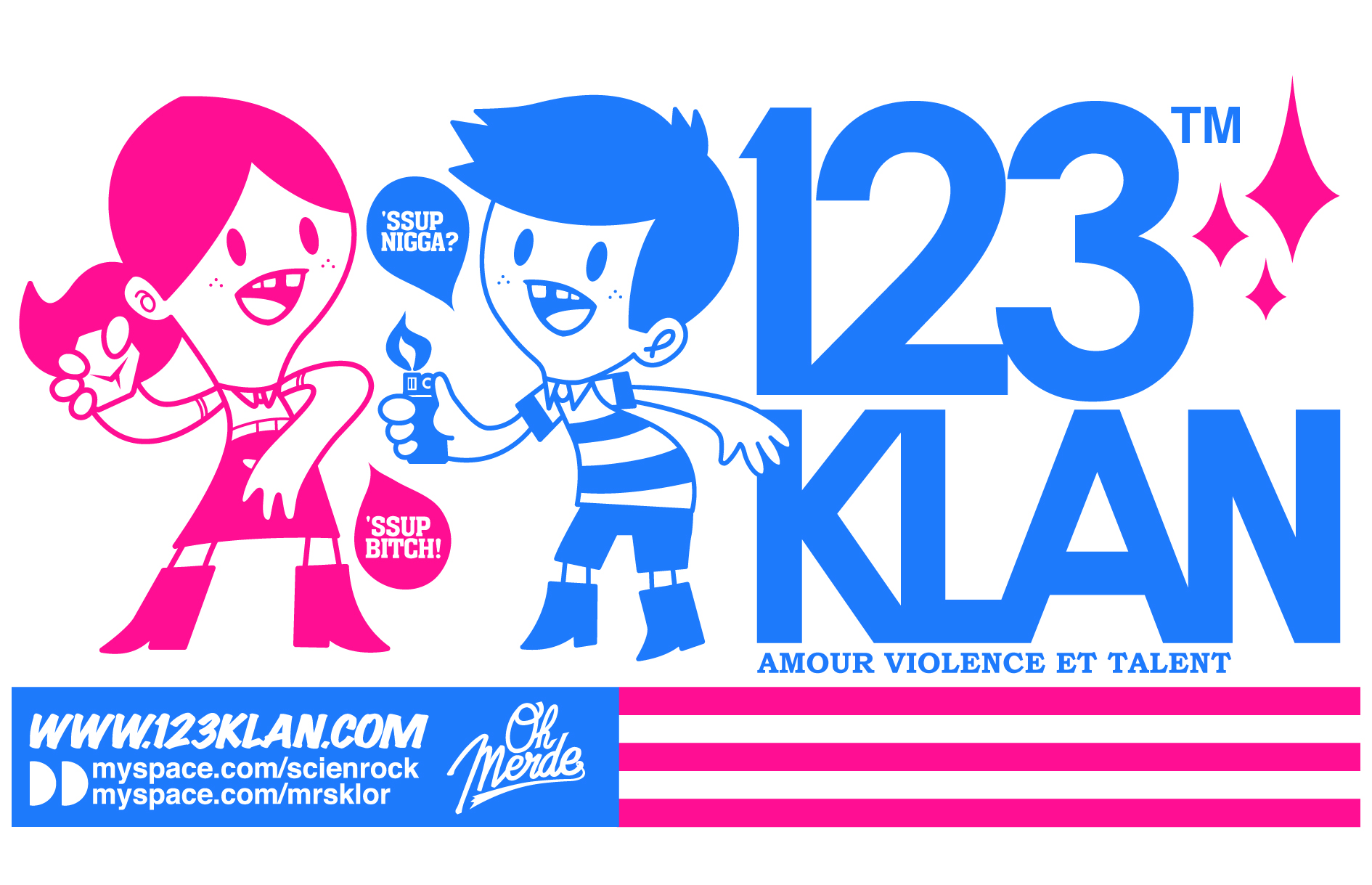 123Klan is a French graffiti crew, founded in 1992 by husband and wife Scien and Klor. Since 1994 the crew have also worked in graphic design, inspired by the work of English graphic designer Neville Brody, and started to apply it to their graffiti (and vice versa). They describe their art as ‘when street knowledge meets technology and graffiti melds with graphic design.’