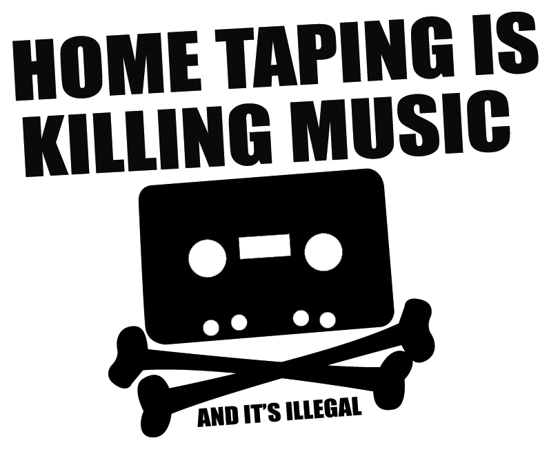‘Home Taping Is Killing Music‘ was the slogan of a 1980s anti-copyright infringement campaign by the British Phonographic Industry (BPI), a British music industry trade group. With the rise in cassette recorder popularity, the BPI feared that people being able to record music from the radio onto cassettes would cause a decline in record sales. The logo, consisting of a Jolly Roger formed from the silhouette of a Compact Cassette, also included the words ‘And It’s Illegal.’ Similar rhetoric has continued; in 1982 Jack Valenti famously compared the VCR and its anticipated effect on the movie industry to the Boston Strangler, and in 2005 Mitch Bainwol of the RIAA claimed that CD burning is hurting music sales.