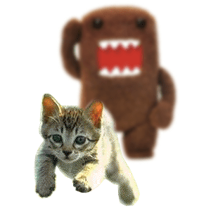 ‘Every time you masturbate… God kills a kitten‘ is the caption of an image created by a member of the website Fark.com in 2002. The image features a kitten (subsequently referred to as ‘Cliché Kitty’) being chased by two Domos (a Japanese TV mascot), and has the tagline ‘Please, think of the kittens.’ This phony PSA is quite out of character with Domo’s image in Japan.