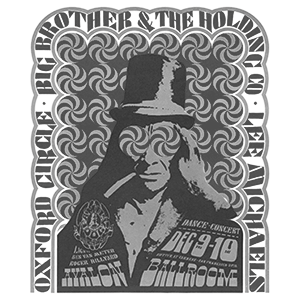 Victor Moscoso (b. 1936) is an artist best known for producing psychedelic rock posters/advertisements and underground comix in San Francisco during the 1960s and 1970s. Born in Spain, Moscoso was the first of the rock poster artists of the 1960s era with formal academic training and experience. After studying art at Cooper Union in New York City and at Yale University, he moved to San Francisco in 1959. There, he attended the San Francisco Art Institute, where he eventually became an instructor. Moscoso’s use of vibrating colors was influenced by painter Josef Albers, one of his teachers at Yale. He was the first of the rock poster artists to use photographic collage in many of his posters.