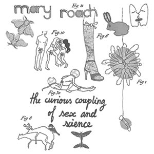 Of the book’s numerous accounts, Roach discusses artificial insemination of sows in Denmark, the notorious history of sex machines, as well as much discussion and commentary on Kinsey’s notorious attic sex experiments. Her footnotes provide additional humor; as in a sentence which includes several DSM diagnoses listed as acronyms she adds ‘And from HAFD (hyperactive acronym formation disorder).’ In the book, Mary Roach describes a session in which she and her husband Ed volunteer to have sex in a 20-inch-diameter (510 mm) MRI tube in the interests of science. During the experiment, a doctor looks on, making suggestions, and finally telling Ed that he ‘may ejaculate now.’