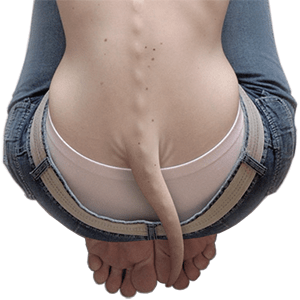 The coccyx, or tailbone, is the remnant of a lost tail. All mammals have a tail at one point in their development; in humans, it is present for a period of 4 weeks, during stages 14 to 22 of human embryogenesis. This tail is most prominent in human embryos 31–35 days old. The tailbone, located at the end of the spine, has lost its original function in assisting balance and mobility, though it still serves some secondary functions, such as being an attachment point for muscles, which explains why it has not degraded further. In rare cases congenital defect results in a short tail-like structure being present at birth. Twenty-three cases of human babies born with such a structure have been reported in the medical literature since 1884.