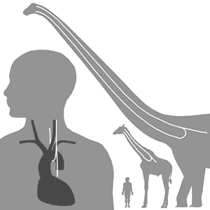The extreme detour of this nerve (about 15 feet in the case of giraffes) is cited as evidence of evolution as opposed to intelligent design. The nerve’s route would have been direct in the fish-like ancestors of modern tetrapods, traveling from the brain, past the heart, to the gills (as it does in modern fish). Over the course of evolution, as the neck extended and the heart became lower in the body, the laryngeal nerve was caught on the wrong side of the heart. Natural selection gradually lengthened the nerve by tiny increments to accommodate, resulting in the circuitous route now observed.