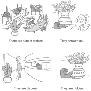 In computing, ambient intelligence (AmI) refers to electronic environments that are sensitive and responsive to the presence of people. Ambient intelligence is a vision on the future of consumer electronics, telecommunications and computing that was originally developed in the late 1990s for the time frame 2010–2020. In an ambient intelligence world, devices work in concert to support people in carrying out their everyday life activities, tasks and rituals in easy, natural way that uses information and intelligence that is hidden in the network connecting these devices (an Internet of Things).