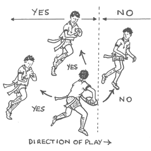 While a forward pass may only be thrown once per down by the team on offense from within or behind the neutral zone (one football length at the spot of the ball), there are no restrictions on the use of lateral passes; any player legally carrying the ball may throw a lateral pass from any position on the field at any time, any player may receive such a pass, and any number of lateral passes may be thrown on a single play. Additionally, a player receiving a lateral pass may throw a forward pass if he is still behind the neutral zone, subject to the forward pass rules. Unlike a forward pass, if a backward pass hits the ground or an official, play continues and, as with a fumble, a backward pass that has hit the ground may be recovered and advanced by either team. Backward passes can also be intercepted. A lateral may be underhand or overhand as long as the ball is not advanced in the pass.