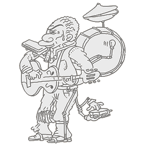 The fotdella was an instrument invented and constructed by Jesse ‘The Lone Cat’ Fuller, an American one-man band musician, who needed an accompaniment instrument beyond the usual high-hat (foot-operated cymbal) or bass drum favored by street musicians. Dreaming it up in the early 1950s, while lying in bed, he set about constructing a foot-operated bass instrument. It ended up as a large upright box with a rounded top, vaguely shaped like the top of a double bass, with a short neck on top. Six bass strings were attached to the neck and stretched over the body.