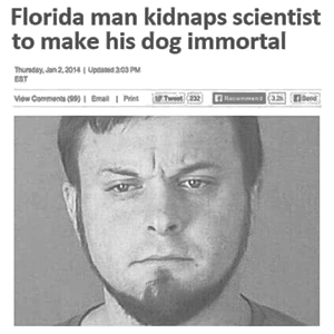 Florida Man is an Internet meme that typically consists of links to news stories and articles about unusual or strange crimes or events occurring in Florida, particularly those where the headline refers to the subject as ‘Florida Man,’ calling attention to Florida’s apparent notoriety for strange and unusual activity. It also implies that the consumer is to consider this ‘Florida Man’ to be an individual wreaking havoc rather than multiple people being referred to by the same title.