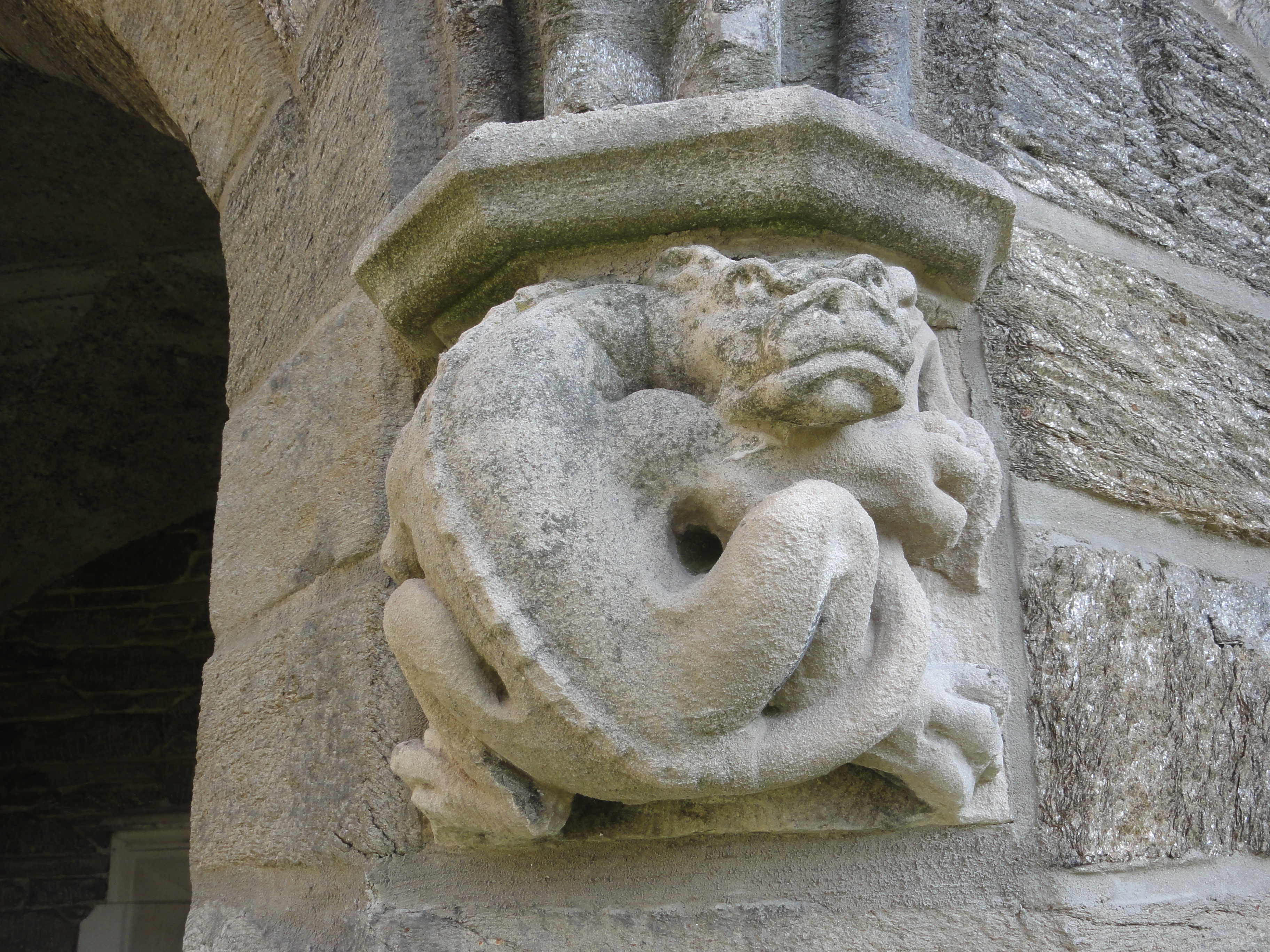 Other grotesques such as gargoyles and Hunky Punks are frequently found on churches all over Europe and it is commonly said that they are there to keep evil spirits away. They are often positioned over doors or windows, presumably to protect these openings.