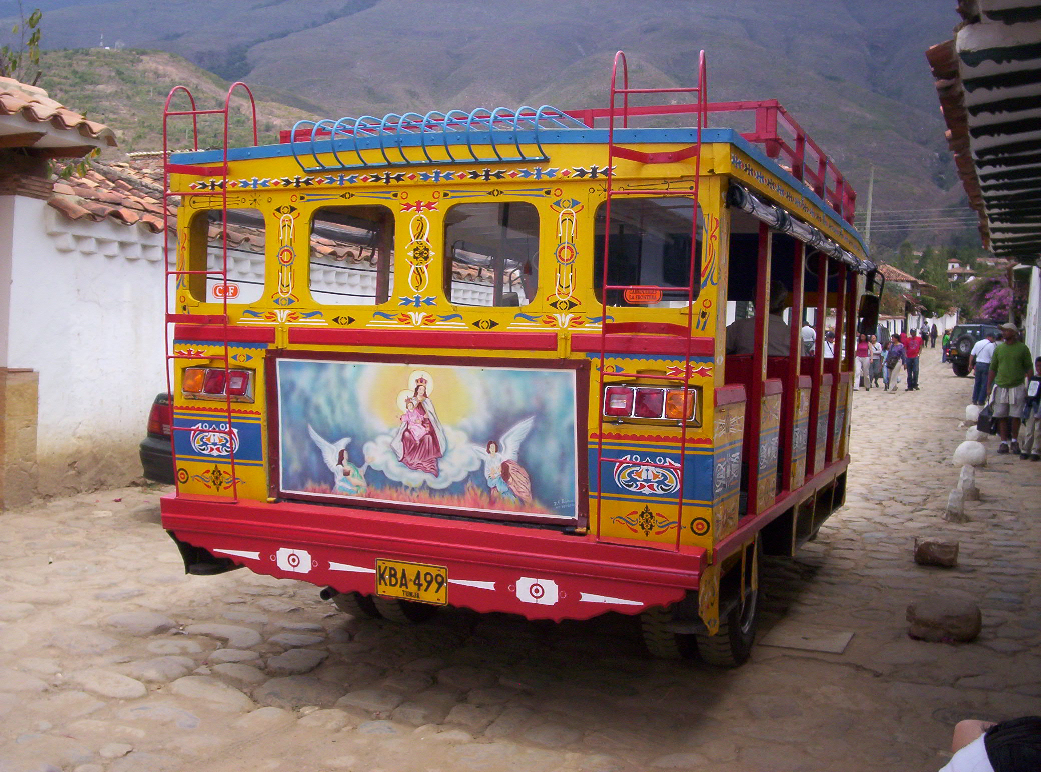 Rustic buses are old artisan modified buses used in rural Colombia and Ecuador where they are known as chivas (kid goats) or escaleras (ladders). They are used as public transport and more recently used as party buses in both countries. These are varied but characterized for being painted colorfully (usually with the yellow, blue, and red colors of the flags of Ecuador and Colombia) with local arabesques and figures.