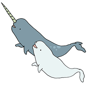 The Narwhal is a rarely seen Arctic whale known for the very long tooth that males have. The tusk’s function is uncertain, perhaps used as a formidable jousting weapon in courtship and dominance rivalry, in getting food, and/or for channeling and amplifying sonar pulses (which they emit), however the tusk is not used in hunting. Long ago, narwhal sightings probably reinforced (or started) the unicorn legends. At times, people found the horn of a dead narwhal washed up on shore and thought that they had found the horn of a unicorn. Narwhal can dive up to 1,500 meters; this makes them one of the deepest diving sea mammals.