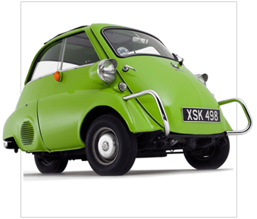 BMW manufactured the Italian Iso Rivolta Isetta under licence, using an engine from one of their own motorcycles. France also produced large numbers of similar tiny vehicles called voiturettes, but unlike the German makes, these were rarely sold abroad. There were a small number of British three wheeled microcars, including the larger Regal and Robin from the Reliant Motor Company in Staffordshire and the smaller P50 and Trident from the Peel Engineering Company on the Isle of Man. Bubble cars were superseded by a new wave of ‘proper small cars’ like the 1959 Austin Mini, which gave far more functionality for their owners for only slightly higher costs.